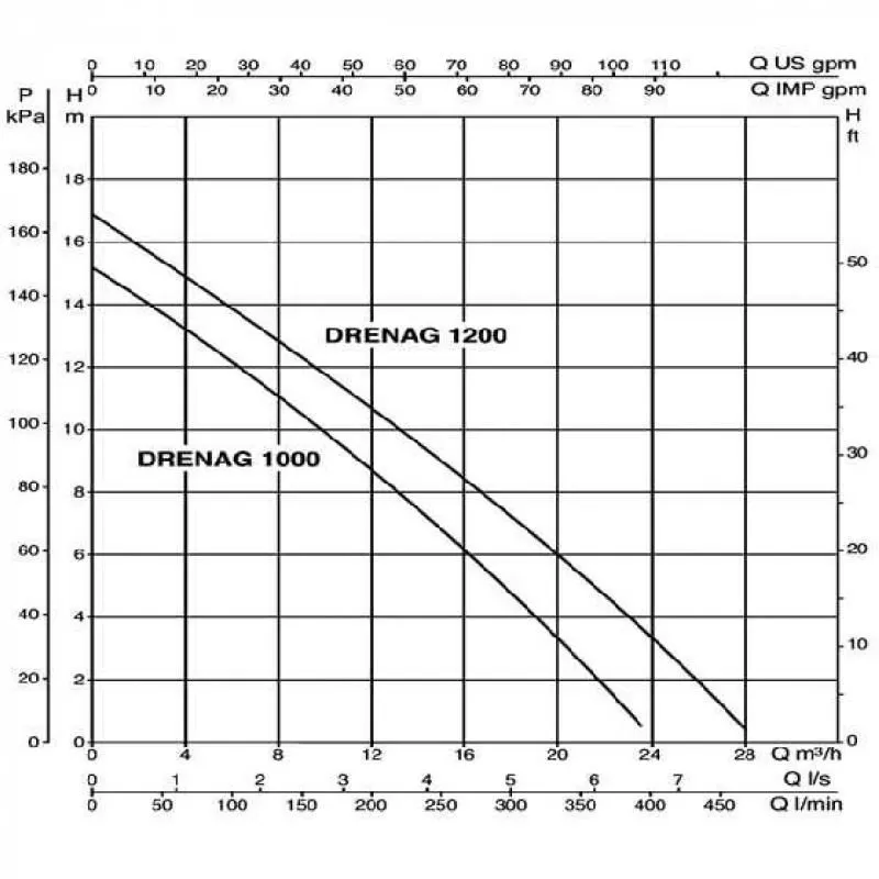 Графические характеристики дренажного насоса DAB DRENAG 1200 M-NA