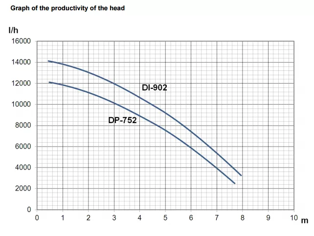 Графические характеристики дренажного насоса ECO DP-752