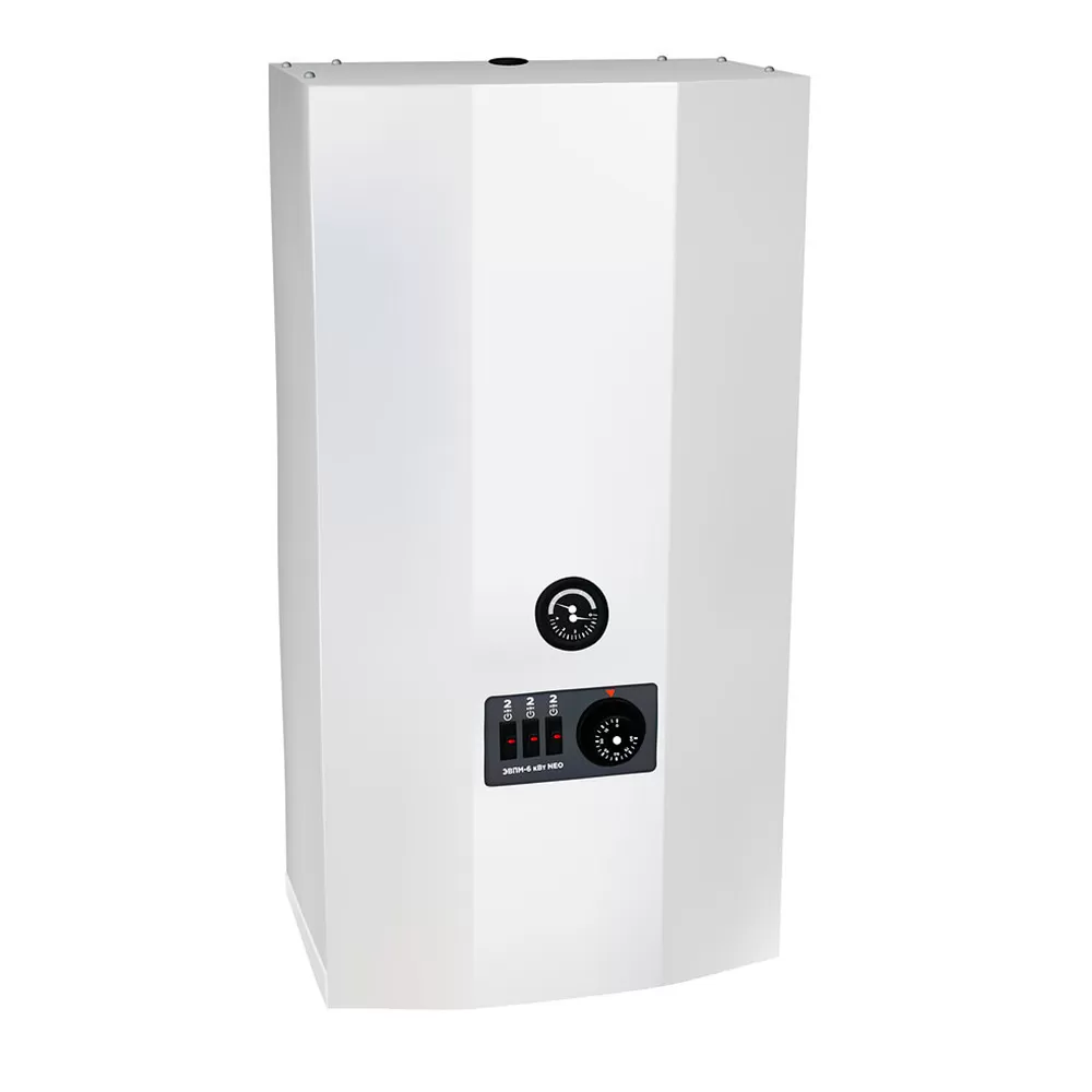 Настенный электрический котёл Ресурс ЭВПМ Neo 6 оснащён ТЭНами из нержавеющей стали, обладающими увеличенным ресурсом. Максимальная мощность составляет 6 кВт, что соответствует 60 кв. м. обогреваемой площади. Для снижения нагрузки на сеть и уменьшения износа предусмотрено ступенчатое снижение мощности до 4 и 2 кВт. Температура теплоносителя в отопительном контуре регулируется от +35 до +85 градусов.