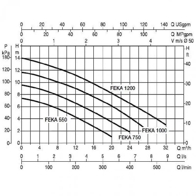 Графические характеристики фекального насоса DAB FEKA VS 550 T-NA