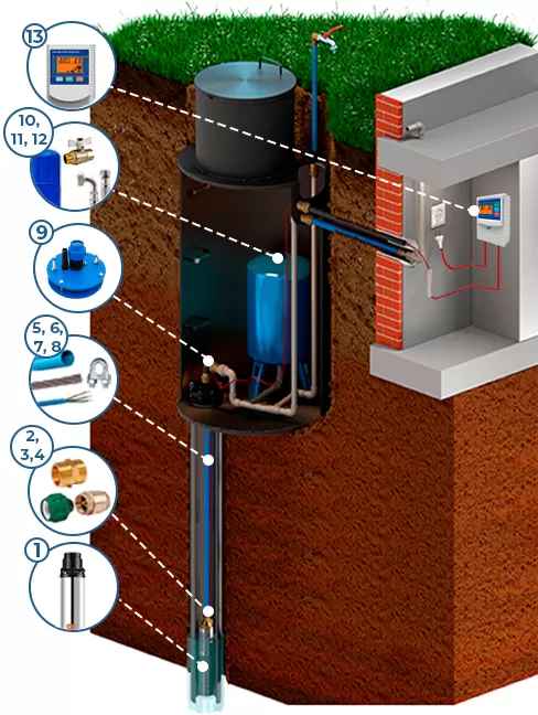 Обеспечение крупных ферм водой из глубоких водозаборов, орошение садов и огородов, питомников деревьев и кустарников, осушение территорий, сантехника, промышленность.Установка скважинного насоса IBO 3.5 SC 2/18 кабель 20 метров