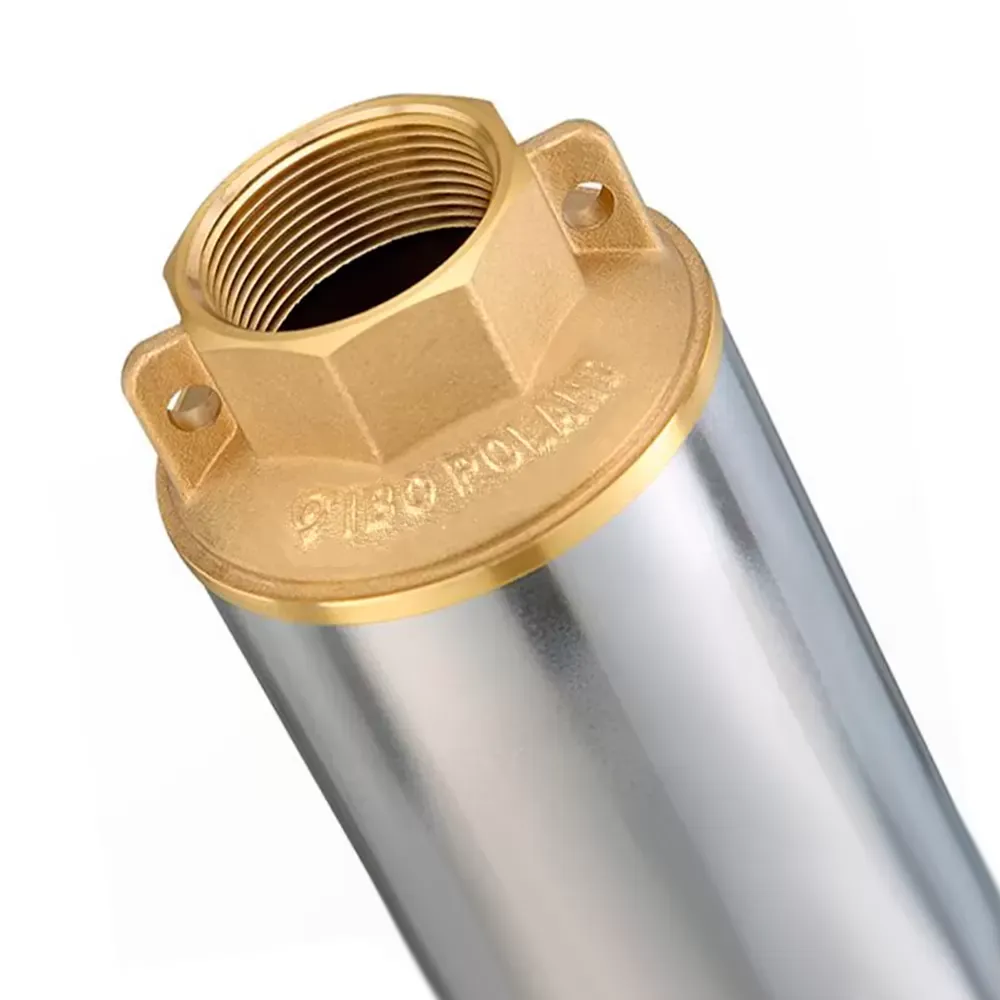 Насос для скважины IBO 3Ti 27 3–х дюймовые многоступенчатые погружные насосы диаметром 74 мм с повышенной стойкостью к песку, рассчитаны на 3 и 4– дюймовые скважины. Напорная характеристика насоса составляет 110 м при максимальной производительности в 3 м³/час, при этом мощность электродвигателя составляет 750 Вт. Эффект повышенной устойчивости к песку был достигнут благодаря использованию «плавающих лопастных колес» и выбору износостойких материалов: латуни, нержавеющей стали AISI 304 и высококачественного пластика. В связи с этим гарантийный срок на насос 750 Вт предоставляется на 2 года Конденсатор насоса IBO 3Ti 27 встроен в двигатель, благодаря чему электрическая установка намного проще, чем в случае насосов со стартовой коробкой. Длинна кабеля насоса 750 Вт составляет 1 м. Насосы оснащены тепловой защитой, установленной в обмотке двигателя. Насосы серии 3” Ti благодаря своей бесперебойной работе и высоким параметрам были признаны чаще всего устанавливаемыми насосами в Польше.