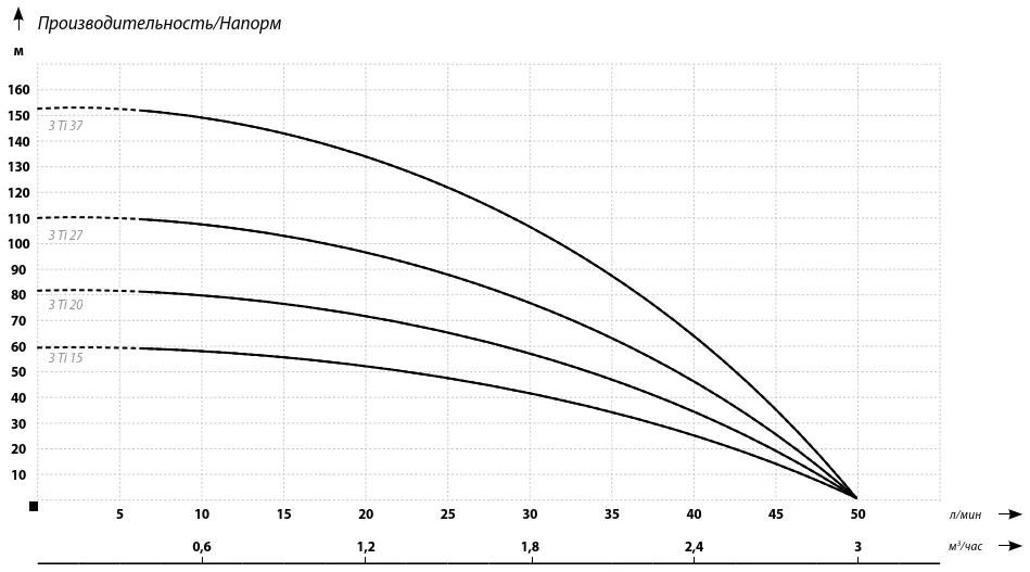 Графические характеристики насоса для скважины IBO 3Ti 27