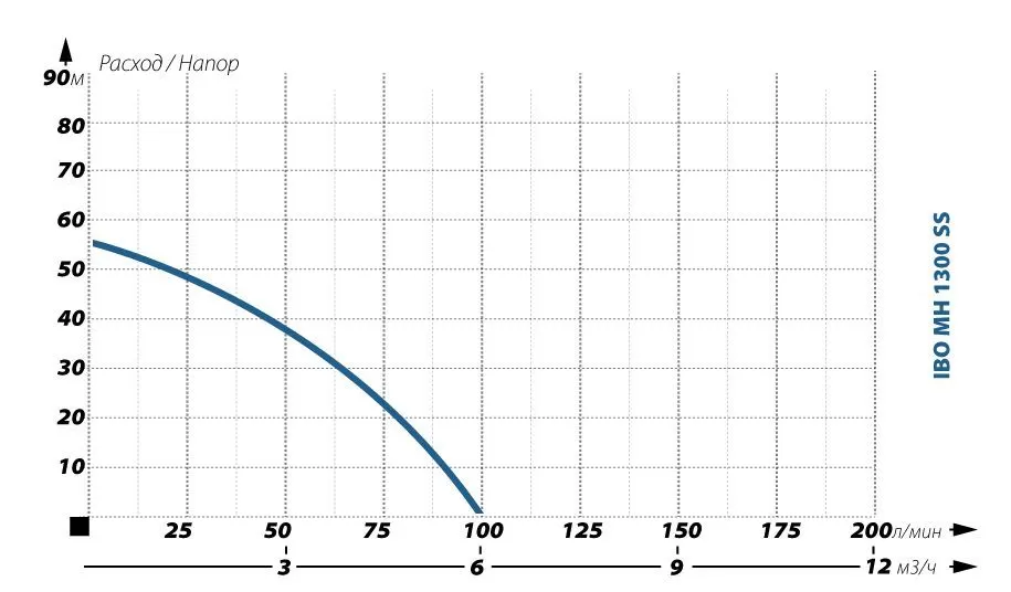Насосная станция IBO MH 1300 INOX 24л исполнена на базе многоступенчатого самовсасывающего центробежного насоса серии MH. Насосная станция MH доступны в двух вариантах: с лопастными колесами из нержавеющей стали (в названии товара должно быть указано INOX) или с лопастными колесами из норила. Корпус насосной станции IBO MH 1300 INOX 24л выполненный из нержавеющей стали. Тихая работа насоса позволяет устанавливать их в доме. Насосы оснащены тепловой защитой, установленной в обмотке двигателя. Мощность электродвигателя составляет 1300 Вт, максимальный напор 55 м и максимальная производительность 6 м³/час. Объем накопительного бака 24 л. Производительность в 6 м³/час позволяет запитать от насосной станции дом и не только, хватит и для организации полива и подключения бани. Насосная станция отлично подойдет для поднятия давления в центральной системе водоснабжения. Но для использования в системе повышения давления насосную станцию IBO MH 1300 INOX 24л необходимо доукомплектовать реле сухого хода.