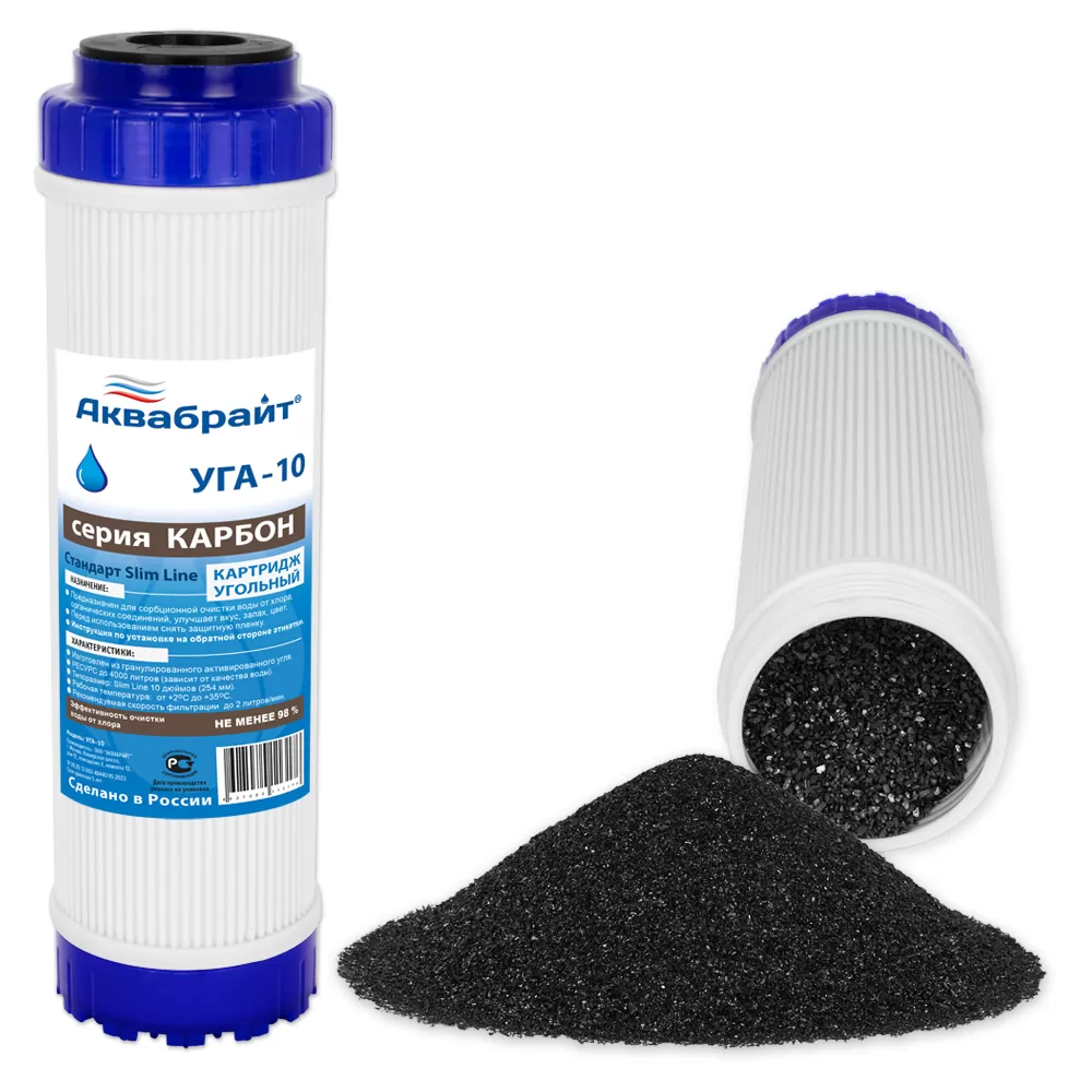 Картридж для фильтра АКВАБРАЙТ УГА-10 изготовлен из гранулированного активированного угля с пищевым допуском. Предназначен для очистки воды от хлора, органики и микроорганизмов.