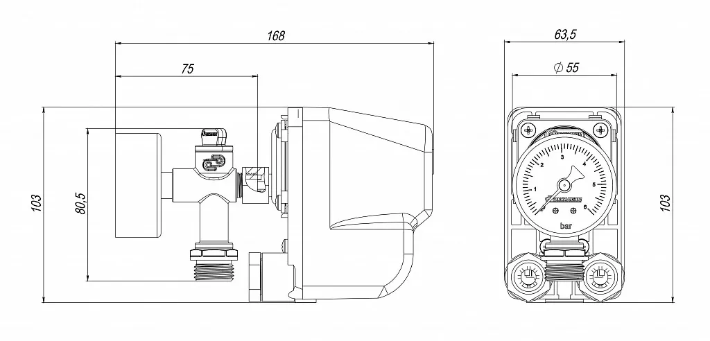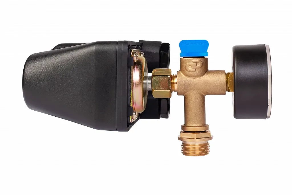 Визуальный контроль давления в системе водоснабжения позволяет осуществлять манометр с пределом измерения 6 бар.