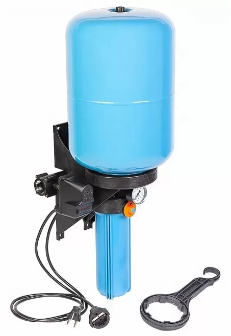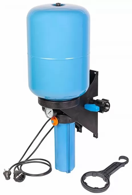 Предназначен для поддержания заданного давления в системах водоснабжения с предварительной фильтрацией воды. Легкий и удобный монтаж. Не требует дополнительной настройки. Автоматическое управление включением/выключением электронасоса. Полный комплект для автоматизации системы водоснабжения. Предварительная фильтрация воды. Календарь смены картриджей фильтра. Вся система устойчива к коррозии. Позволяют подключаться в любом удобном месте магистрали вне зависимости от направления потока воды. Объем бака 24 литра.