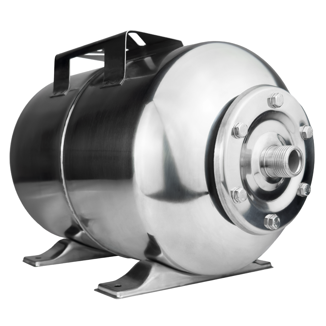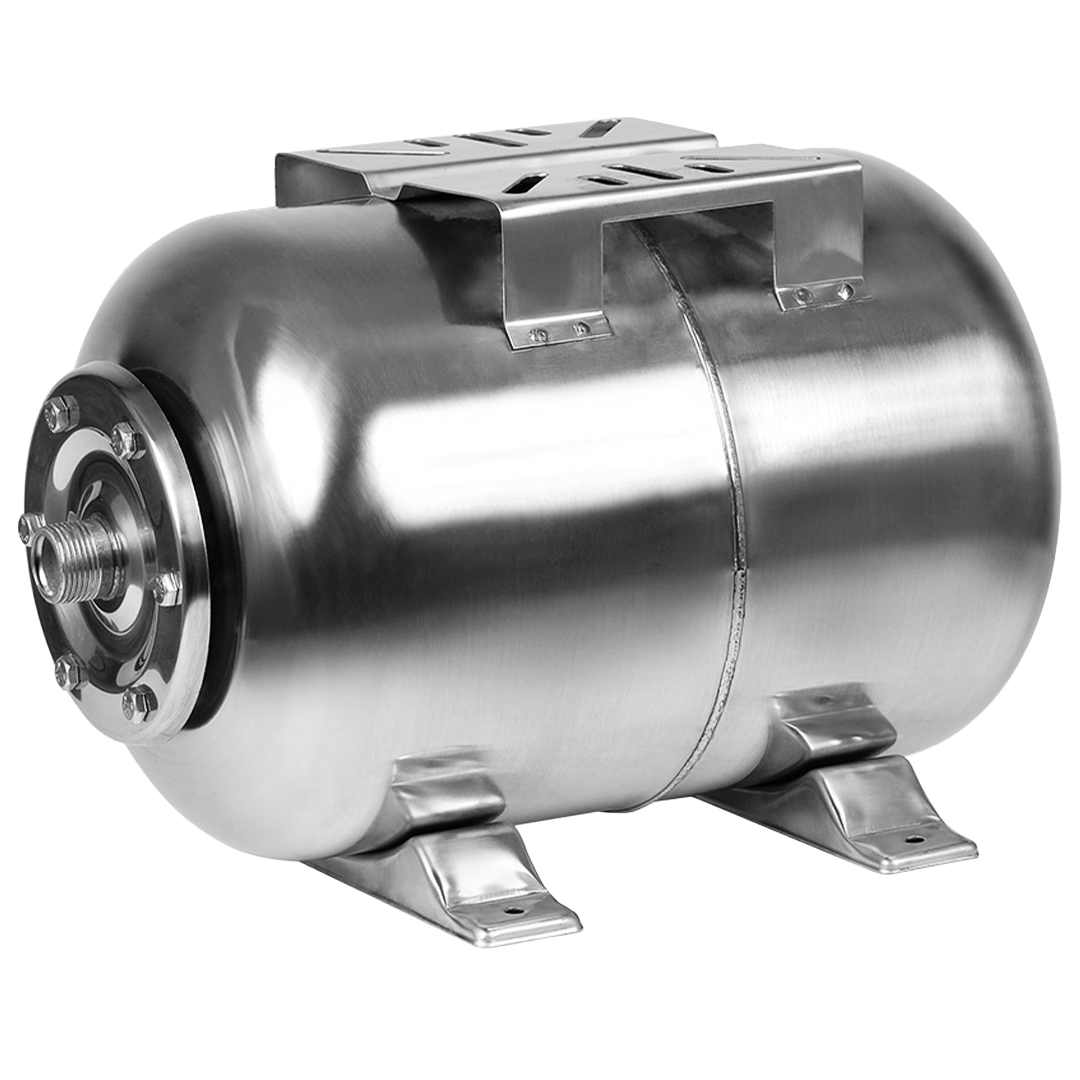 Горизонтальный мембранный бак MAXPUMP объемом 24 литра. Бак выполнен из нержавеющей стали. Мембрана бака выполнен из пищевой резины на основе бутилкаучука. Бак снабжен приварной площадкой для установки поверхностного насоса. В нижней части бака установлены металлические кронштейны с целью крепления бака к поверхности.