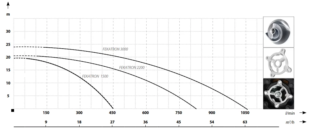 С выдачей максимальной мощности 1500 Вт, FEKATRON 1500 способен поднимать воду на высоту до 20 метров при максимальном расходе 27 м³/час. Номинальная производительность в 4.99 м³/час и номинальный напор 3.75 метра гарантируют эффективную обработку грязной воды. Этот насос оснащен металлической крыльчаткой и стальным измельчителем, что делает его идеальным для работы в условиях с содержанием частиц до 50 мм.