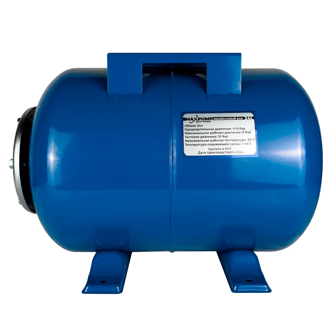 Мембранные баки MAXPUMP оснащаются рабочим штуцером диаметром 1". Рекомендуемый диапазон температур составляет от 0 до 45 C°, исходное давление 1.5 атм, максимальное давление до 6 атм.