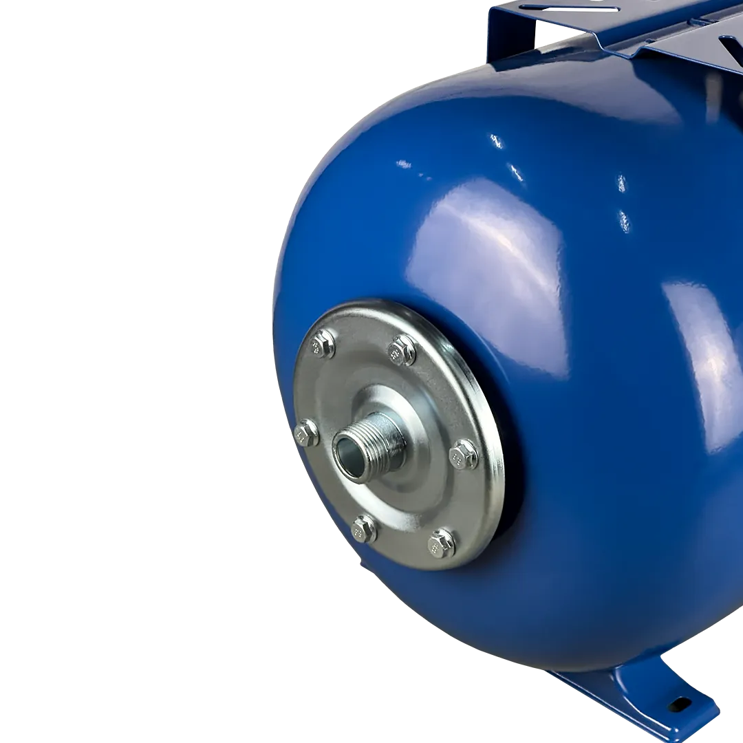 Гидроаккумулятор для воды MAXPUMP H-50 горизонтального исполнения предназначен для систем холодного водоснабжения. Гидроаккумулятор служит для накапливания запаса воды объемом до 50 литров, снижения вероятности возникновения гидравлических ударов в системе, а также сокращения количества пусков насоса, тем самым продлевая срок службы насоса. Конструкция гидроаккумулятора представляет собой стальной корпус, окрашенный в зеленый цвет, со сменной мембранной, изготовленной из высококачественного материала EPDM, опорными ножками у основания бака, воздушным клапаном и площадкой для установки насоса. Горизонтальные гидроаккумуляторы, благодаря установочной площадке, расположенной на поверхности бака, могут использоваться с поверхностными насосами.