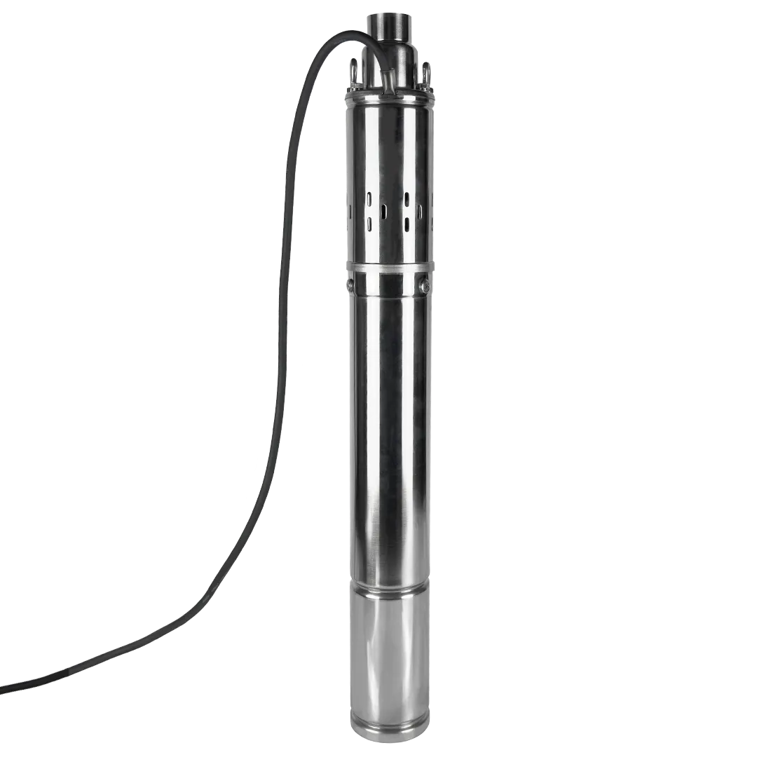 Винтовой скважинный насос MAXPUMP miniVINT насос имеет встроенный в корпусе пусковой конденсатор. Диаметр насоса идеально подходит для скважин 90мм и может использоваться в скважинах до 125мм. Насос отлично подойдет для водоснабжения односемейного дома, максимальный напор насоса составляет 70 м, а производительность 1.5 м³/час. Двигатель насоса обладает мощностью 370 Вт, матерьял обмотки двигателя медь. Корпус насоса выполнен из нержавеющей стали. Насос укомплектован с завода кабелем 15 м. Конструкция насоса проста и легка в обслуживании. Внутри насоса нет привычного вала, на который насажены крыльчатки, разгоняющие питьевую воду для подачи вверх по трубе. Конструкция здесь больше напоминает обычное сверло – шнек, которое при вращении придает жидкости ускорение.