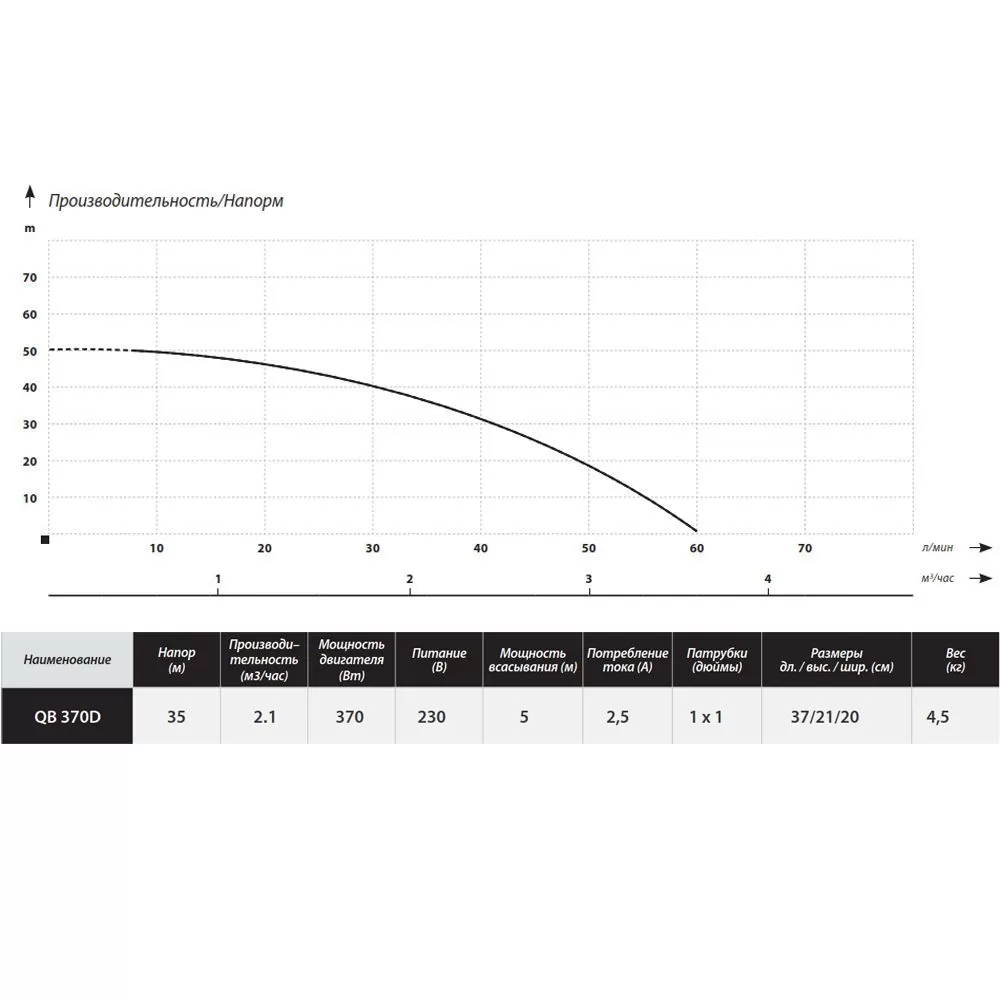 MAXPUMP QB 370D предназначен для работы с чистой холодной водой. Температурный диапазон перекачиваемой жидкости составляет 1-35°C, что позволяет использовать его в различных климатических условиях. Качество воды также является важным фактором при выборе насоса, и в этом аспекте MAXPUMP QB 370D предлагает надежность и эффективность. Крыльчатка насоса изготовлена из прочной латуни, что обеспечивает долговечность и стабильность работы насоса.