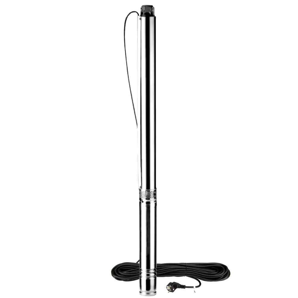 Центробежный, многоступенчатый насос MAXPUMP ST 3 кабель 20 метров с помощью 750 Вт которого можно обеспечить стабильную подачу воды в дом из скважины диаметром от 90мм до 125мм. Модель отличается простотой установки, подключения и технического обслуживания. Она изготовлена из высококачественных прочных материалов, обеспечивающих ей долговечный срок службы при условии правильной эксплуатации. Прибор способен подавать воду на высоту до 113 м, за один час перекачивает максимально 3.2 м³/час. Подключается к однофазной сети с напряжением в 220 В. Конструкция напорной скважинного насоса части позволяет перекачивать воду с небольшим количеством примесей песка. Добились этого благодаря установки в напорную часть насоса плавающих рабочих колес изготовленных из норила. Конструкция двигателя маслозаполненный, обмотка двигателя утолщенная из меди. Напорный патрубок и соединяющая часть двигатель и гидравлику изготовлены из латуни. Насос комплектуется пищевым водопогружным кабелем длинной 20 м.