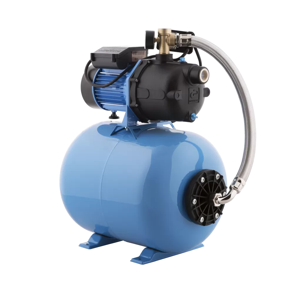 Насосная станция Джилекс Джамбо 70/50 П-50 состоит из насоса и горизонтального гидроаккумулятора объемом 50 литров, реле давления, манометра, соединительной арматуры и электрокабеля с вилкой. Имеет производительность 4,2 м3 в час и напор 50 метров, корпус насоса выполнен из пластика, а гидроаккумулятор из углеродистой стали. Используется для создания комфортных условий пользования водой при пониженном давлении в трубопроводе. В управлении работой насоса применяется реле давления РДМ-5, которое позволяет насосной станции автоматически включаться и выключаться по давлению воды.