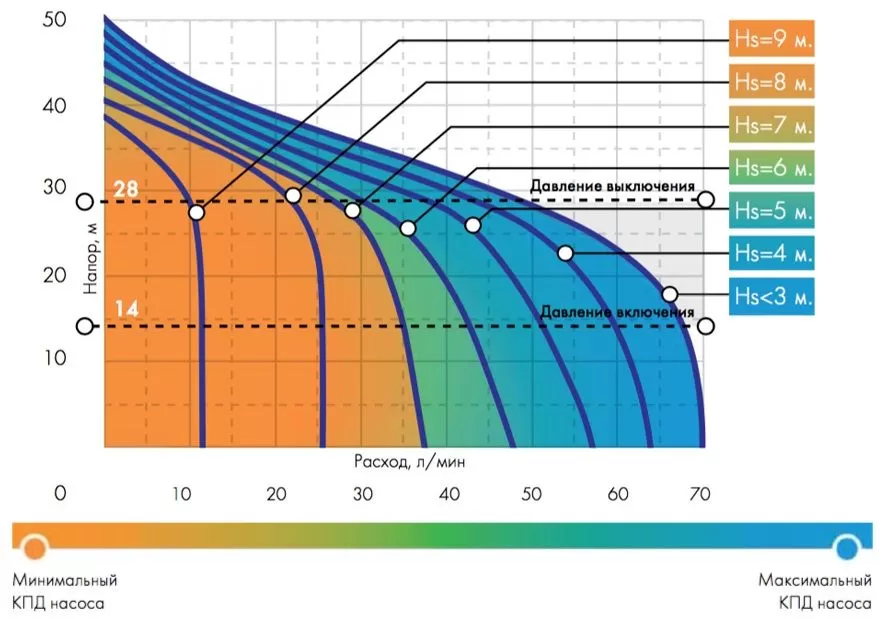 Графические характеристики насосной станции Джилекс Джамбо 70/50 П-50 ДОМ