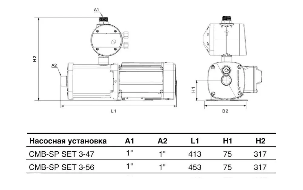 Габариты поверхностного насоса CMB-SP SET 3-56 (PM 2)