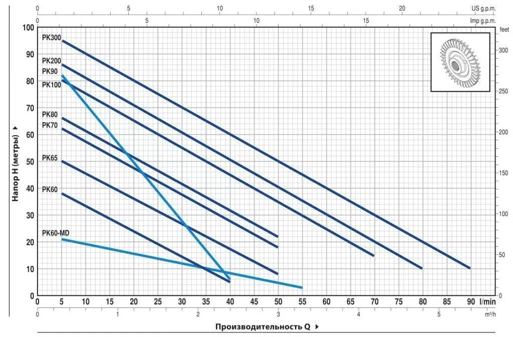 Графические характеристики PEDROLLO PEDROLLO PKM 70