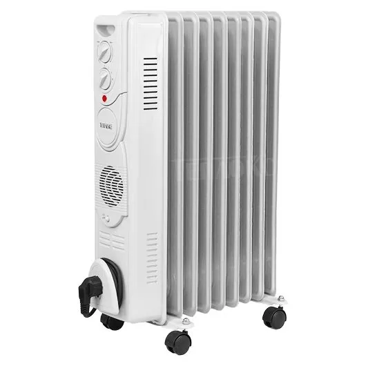 Радиатор масляный ТЕПЛОКС РМ20-09ТВ предназначен для нагрева воздуха в жилых помещениях до 20 м² и автоматического поддерживания температуры воздуха. Радиаторы масляные ТЕПЛОКС серии ТВ состоят из стального корпуса, окрашенного специальной эмалью, устойчивой к высокой температуре. В нижнюю часть корпуса установлен трубчатый нагревательный элемент (ТЭН), который имеет три режима мощности в зависимости от модели масляного радиатора. Внутри корпуса залито масло, которое является проводником и способствует передачи тепла от ТЭНа к корпусу. В кожух радиатора под ручками управления встроен тепловентилятор керамический мощностью 400 Вт, используемый для быстрого нагрева воздуха.