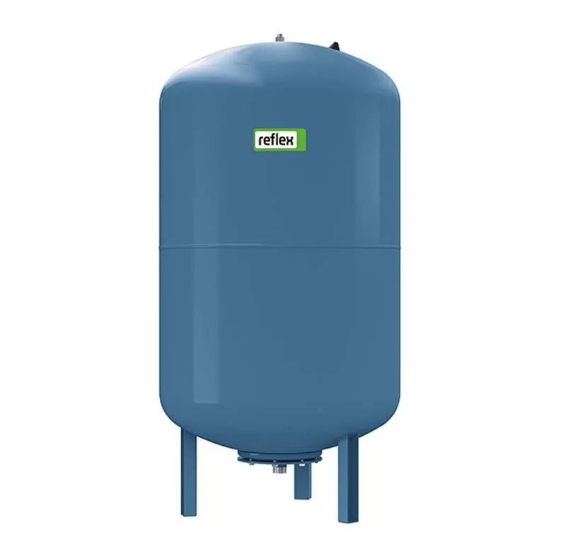 Расширительные баки для ГВС Refix DE 300 предназначены систем питьевого водоснабжения, горячего водоснабжения, систем пожаротушения, промышленного водоснабжения. Конструкция бака представляет собой непроточный гидроаккумулятор с бутиловой сменной мембранной в виде груши в соответствии с DIN EN 13831. Поверхности всех баков, контактирующие с водой, защищены от коррозии. На заводе заполнены азотом с предварительным давлением 4 бара. Баки снабжены рабочими штуцерами для подключения к системе ГВС диаметром 1¼". У основания бака установлены специальные опорные ножки. Максимальное рабочее давление для данной модели составляет 10 бар.