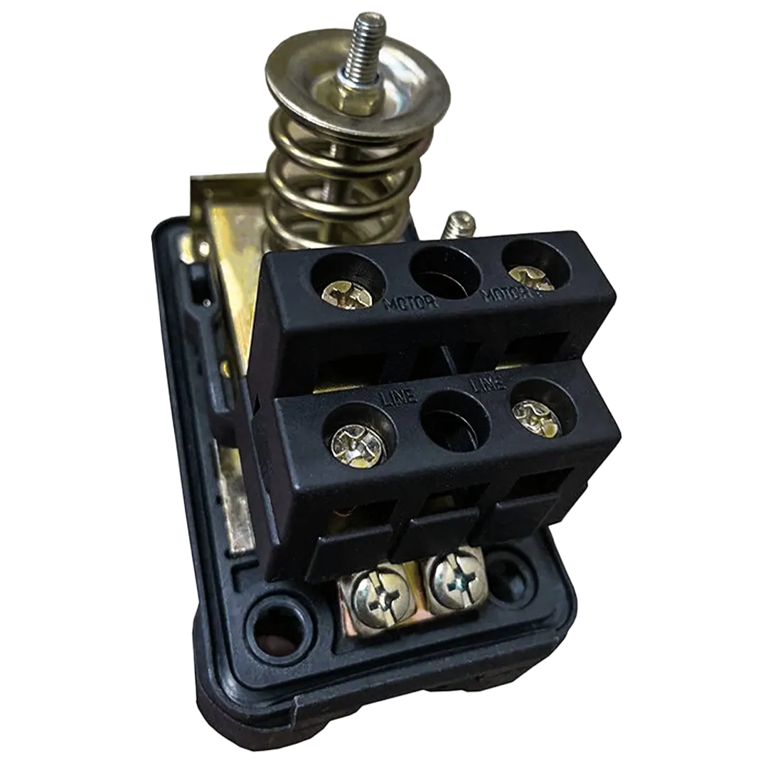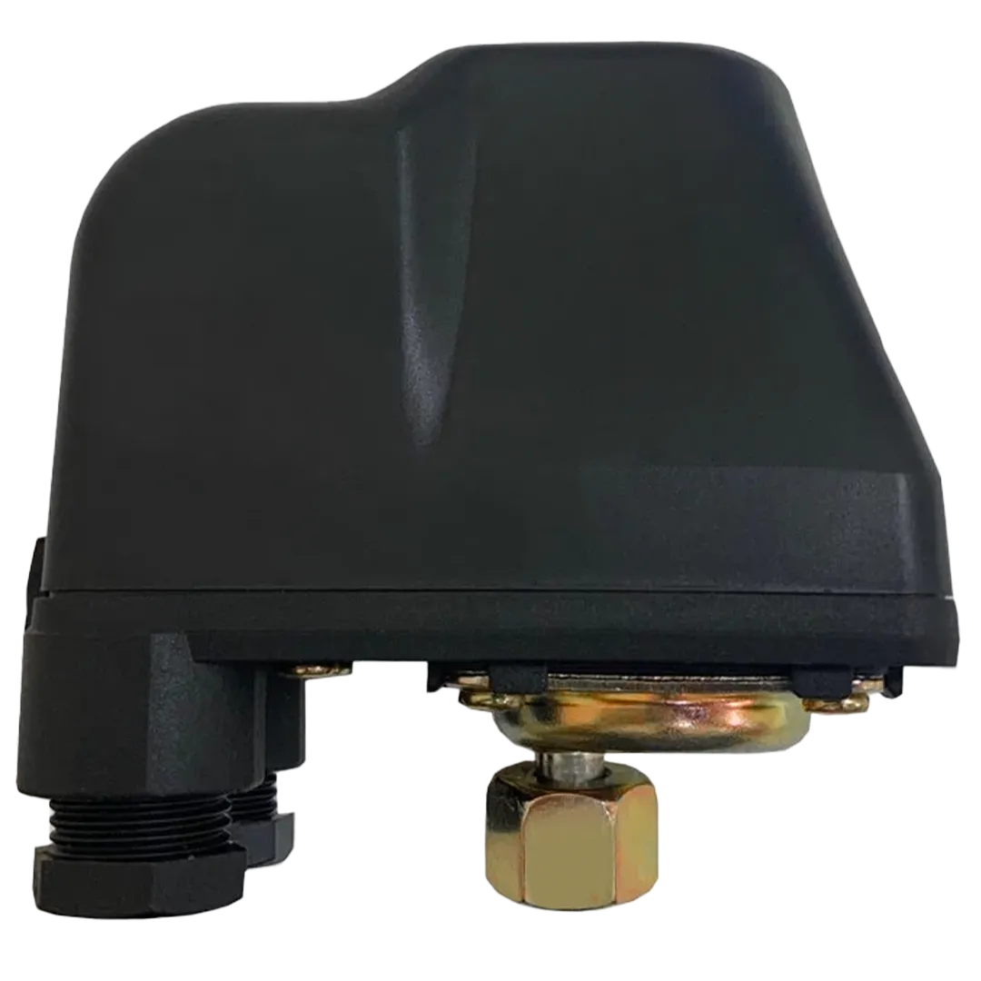 Реле давления предназначено для включения и отключения однофазного насоса водоснабжения по заданному давлению. Мощность коммутируемого контакта - 16А. 2,2 кВт., диапазон регулировки давления от 1 до 6,5 бар, заводская настройка 1,4 старт (запуск насоса), 2,8 стоп (остановка насоса), гидравлическое подключение - 1/4" в.р. (вращающая гайка) уплотнительное кольцо в комплекте, класс защиты - IP54.