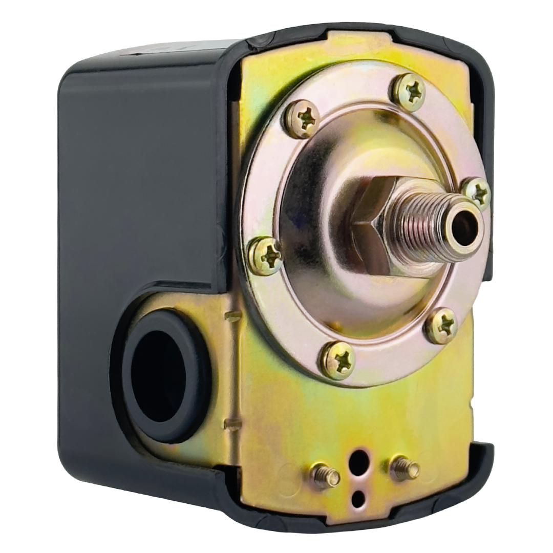 Однофазный реле давления MAXPUMP PS-02 с тремя 1-дюймовыми точками подключения, простой установкой, без необходимости установки фитинга непосредственно на выходе насоса, а также возможностью подключения садового штифта и гидрофобного резервуара. Реле давления насоса фиксирует падение водяного давления и в момент достижения порога включения реле включает насос. После этого мембранный бак начинает наполняться водой, давление увеличивается, и, при достижении порога выключения, реле давления отключает насос. Заводские настройки по умолчанию могут быть изменены от 1 до 5 бар, в зависимости от того, включены ли они и выключены от 1 до 0 бар.