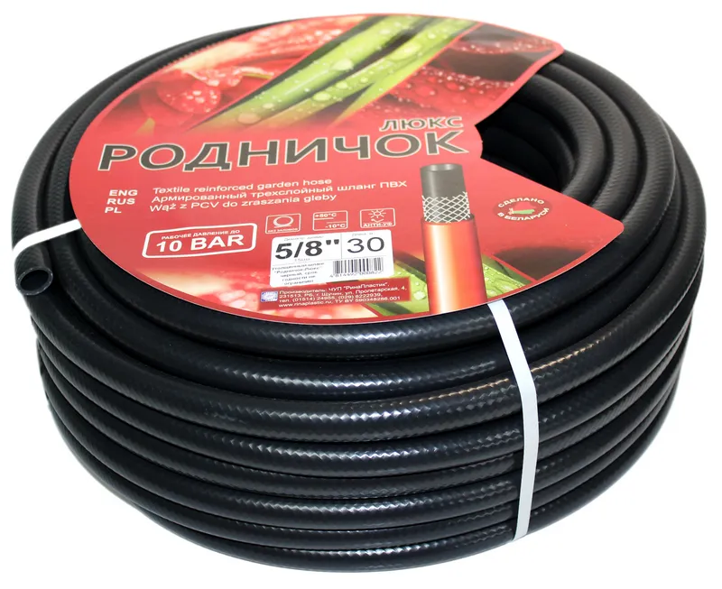 Шланг ПВХ поливочный армированный Родничок-Люкс 5/8" 25м (черный)