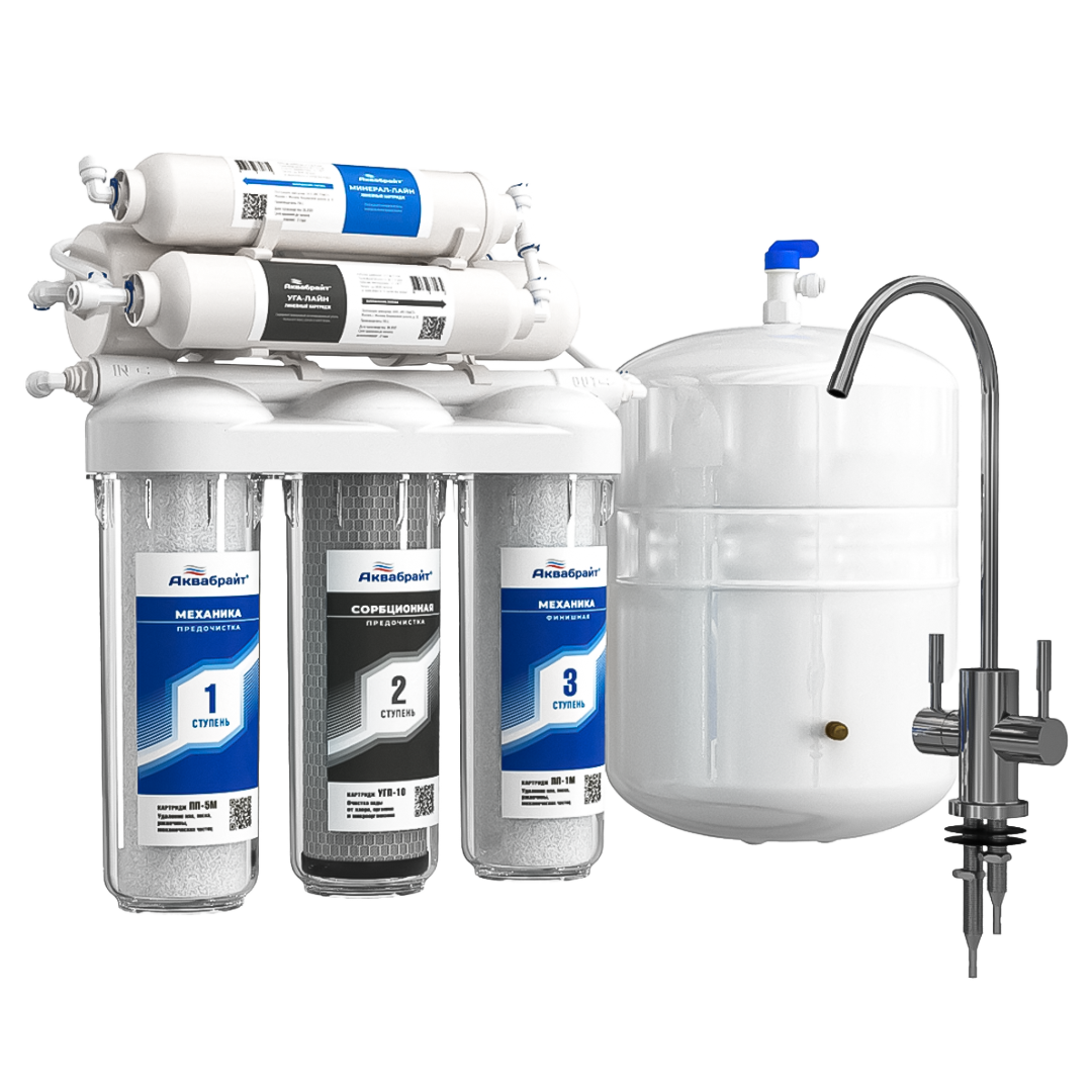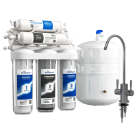 АБФ-ОСМО-6 Система очистки воды с обратноосмотической мембраной предназначена для очистки холодной воды от хлорорганических соединений, железа, пестицидов, тяжелых металлов, бактерий и вирусов. Очищенная вода предназначена для питья, приготовления пищи и т.п.
