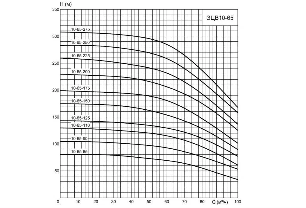 Графические характеристики ЭЦВ 10-65-65н