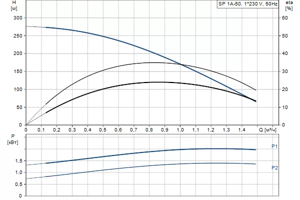 Насос Grundfos SP 1A-50 создан с применением новейших гидравлических технологий. Grundfos SP 1A-50 созданные специально для того, чтобы обеспечивать максимальную эффективность в периоды высокой нагрузки, насос имеет низкую стоимость и высокую надёжность эксплуатации вне зависимости от вида назначения. Grundfos SP 1A-50 обеспечивает высокую эффективность, высокое сопротивление абразивному износу (песку и иным абразивам), защиту от перегрева двигателя и простоту технического обслуживания. Также доступна готовая к применению система контроля и управления, предназначенная для постоянной оптимизации работы насосной системы. Максимальная производительность насоса 1.4 м3/час, максимальный напор 276 м при мощности электродвигателя 1500 Вт. Насос работает от сети 220 в. Гарантийный срок на насос Grundfos SP 1A-50 составляет 2 года.