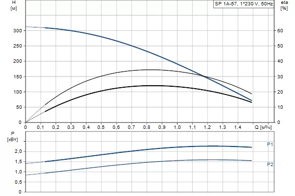 Насос Grundfos SP 1A-57 создан с применением новейших гидравлических технологий. Grundfos SP 1A-57 созданные специально для того, чтобы обеспечивать максимальную эффективность в периоды высокой нагрузки, насос имеет низкую стоимость и высокую надёжность эксплуатации вне зависимости от вида назначения. Grundfos SP 1A-57 обеспечивает высокую эффективность, высокое сопротивление абразивному износу (песку и иным абразивам), защиту от перегрева двигателя и простоту технического обслуживания. Также доступна готовая к применению система контроля и управления, предназначенная для постоянной оптимизации работы насосной системы. Максимальная производительность насоса 1.3 м3/час, максимальный напор 333 м при мощности электродвигателя 1500 Вт. Насос работает от сети 220 в. Гарантийный срок на насос Grundfos SP 1A-57 составляет 2 года.