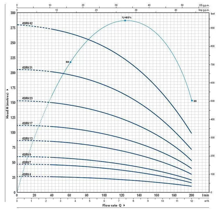 Глубинный насос Pedrollo 4SR8/13-P, отличается объективной ценой и надежной работой всех исполнительных механизмов. Насос Pedrollo 4SR8/13-P достаточно простой в эксплуатации и обслуживании, поэтому отлично подходит как для домашнего, так и промышленного применения.В основе работы Pedrollo 4SR8/13-P лежит конструктивно простой, но функционально успешный многоступенчатый центробежный принцип. Электрический двигатель подключается к агрегату через суппорт, в соответствии с нормативами международного стандарта NEMA. Мощность электродвигателя насоса составляет 2200 Вт . И при таких показателях мощности насос обладает максимальным напором в 87 метров и максимальной производительностью 12 м3/час. Функционирование Pedrollo 4SR8/13-P идентично большинству устройств, основанных на центробежных механизмах подачи воды. Жидкость втягивается в корпус устройства благодаря центробежной силе, создаваемой рабочими колесами, которые также проталкивают воду через все тело насоса "диаметр насоса 4"", а затем в нагнетающий патрубок "диаметр патрубка 2"", через который вода и попадает к конечному потребителю. Главной особенностью насоса Pedrollo 4SR8/13-P является малый диаметр корпуса агрегата, а также то, что перекачиваемая вода не касается стенок двигателя. Между жидкостью и корпусом движущей установки располагается прослойка из технологического масла, которая и предотвращает попадание мелких частиц непосредственно в исполнительный механизм. В то время как охлаждение электропривода происходит за счет верхнего способа забора воды, т.е. перекачиваемая жидкость находится всегда выше уровня расположения двигателя. Насос питается от сети в 380 в и комплектуется кабелем 1.5 метров.