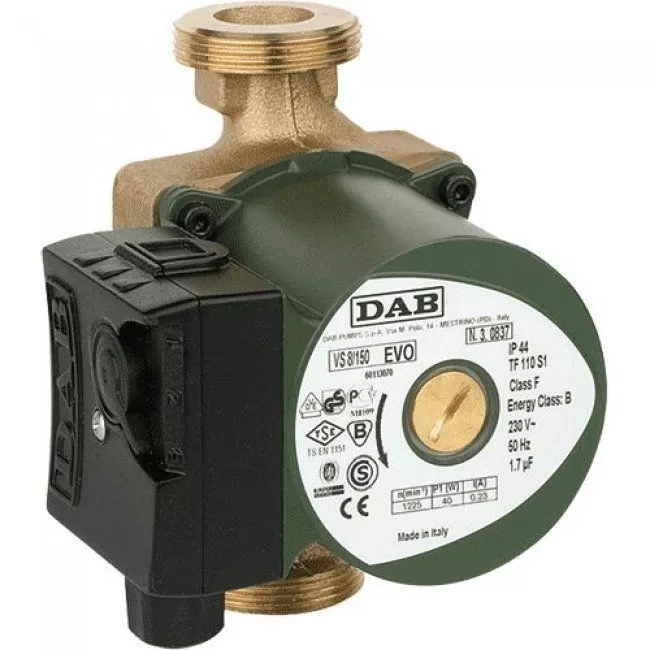 Циркуляционный насос DAB VS 8/150 M используется, главным образом, для циркуляции жидкости в системе горячего водоснабжения (ГВС). Насос имеет бронзовый корпус, поскольку жидкость в системе ГВС является корозионно-активной ввиду высоких температур и большого количества растворенного кислорода. Насос DAB VS имеет одну фиксированную скорость вращения и подбирается (исходя из обеспечения необходимых гидравлических характеристик, а именно преодоления сил гидравлического сопротивления контура) под конкретный контур циркуляции. Подшипники насоса смазываются перекачиваемой жидкостью.