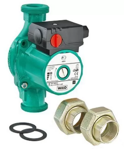 Циркуляционный насос WILO STAR-RSG 30/8 с мокрым ротором и резьбовым соединением. Возможен выбор ступеней частоты вращения для согласования мощности.