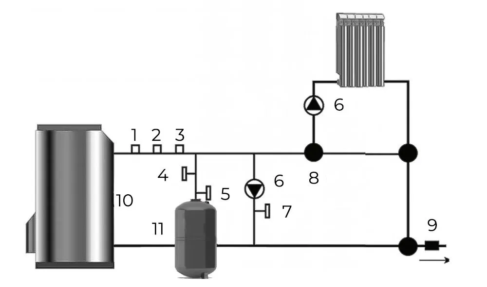 Рекомндуемая схаму установки расширительного бака для отопления WESTER WRV 50 л